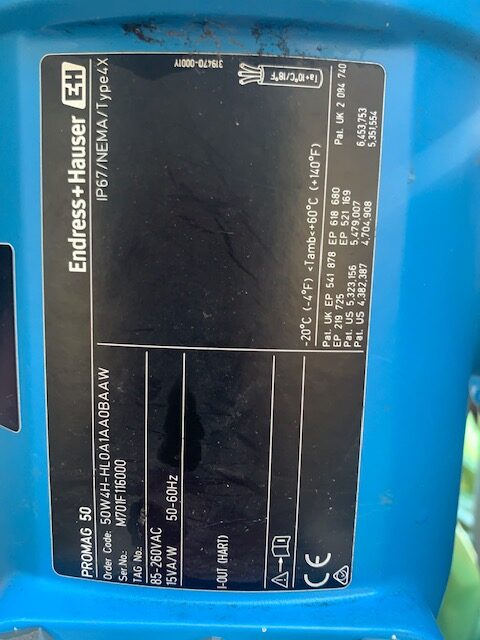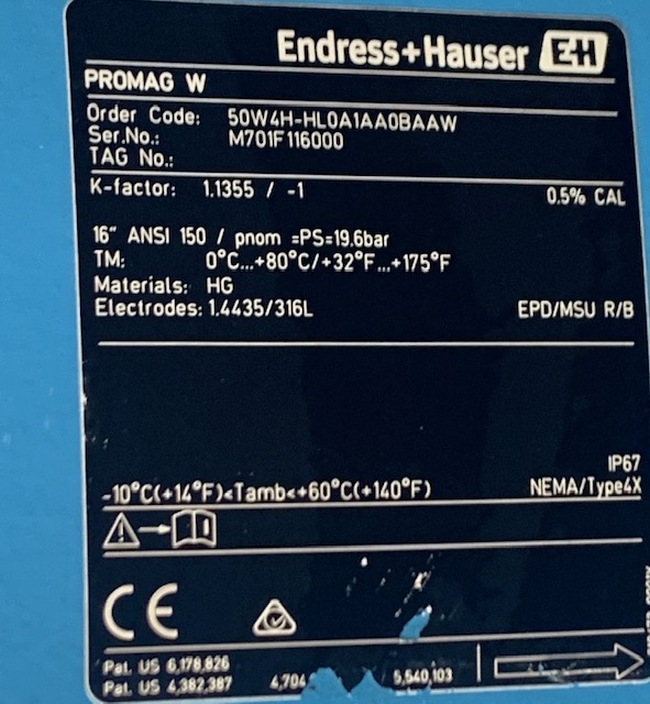 16″ Endress Hauser 50W4H-HL0A1AA0BAAW PROMAG W Magnetic Flowtube