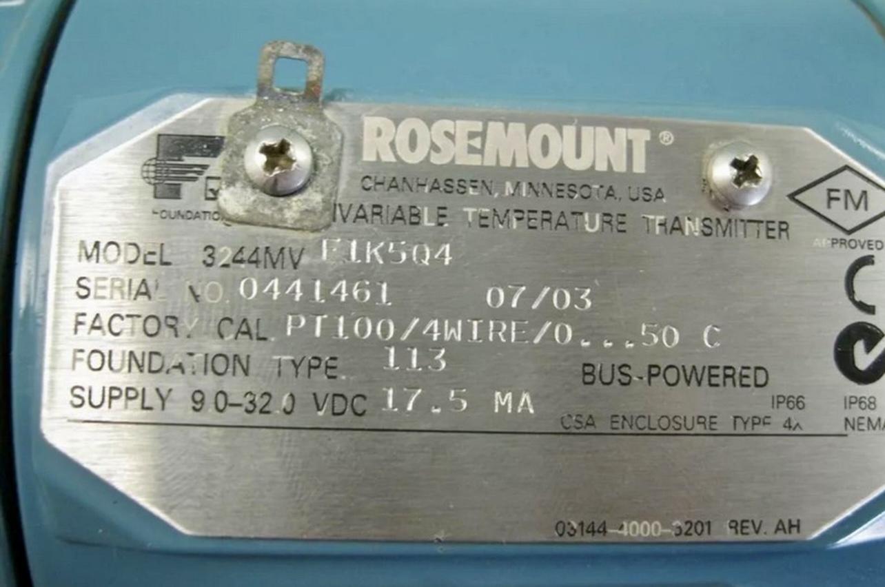 Rosemount Temperature Transmitter 3244MVF1K5Q4 Range 0-50C FIELDBUS PROTOCOL