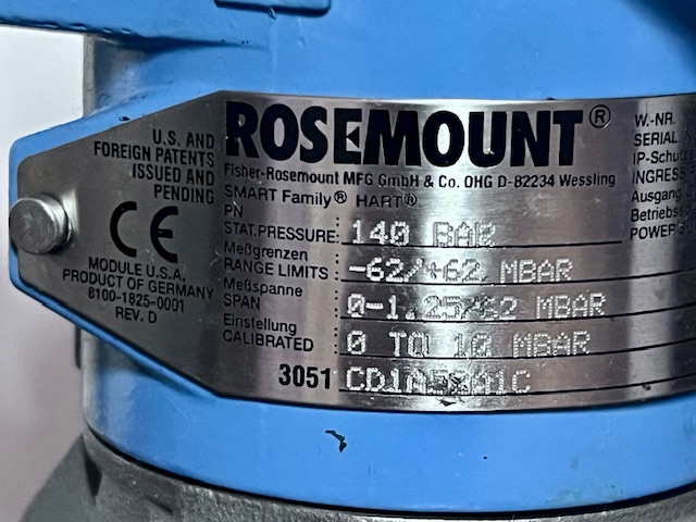 Rosemount Pressure Transmitter 3051CD1A52A1C HART