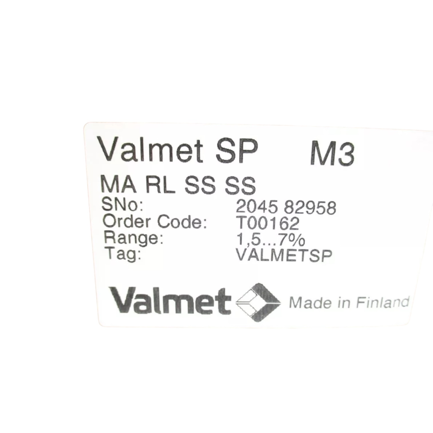 Valmet Metso SP Consistency Transmitter MA RL SS SS
