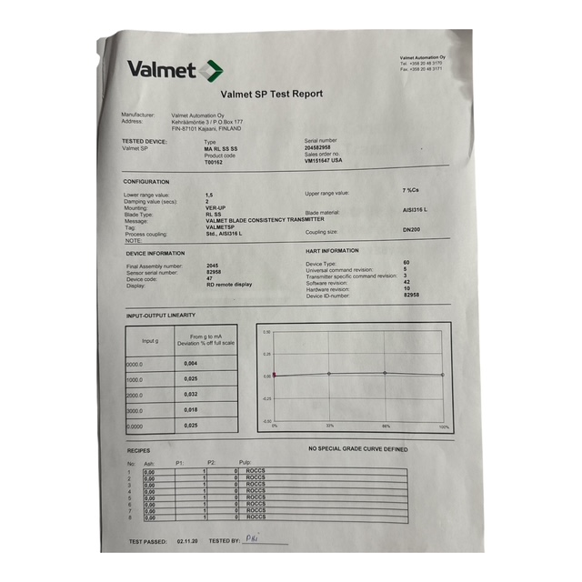 Valmet Metso SP Consistency Transmitter MA LL SS SS